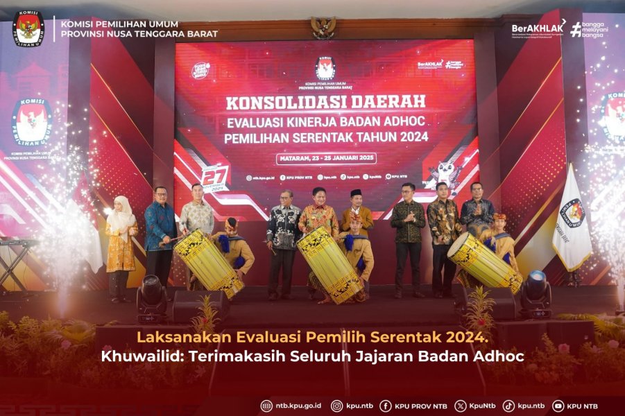 KPU Provinsi NTB melaksanakan konsolidasi daerah dalam rangka evaluasi Tahapan Pemilihan Serentak Tahun 2024, mulai tanggal 23 sampai dengan 25 Januari 2024, di Mataram