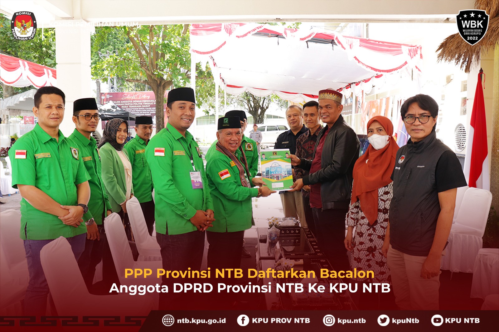 PPP mendaftarkan Bakal Calon Anggota DPRD Provinsi NTB ke KPU Provinsi NTB. Hadir pada pendaftaran Sabtu (13/5) adalah Ketua PPP Provinsi NTB H. Muzihir dan Sekretaris PPP Provinsi NTB Moh Akri didampingi petugas penghubung dan Operator Silon DPRD beserta simpatisan