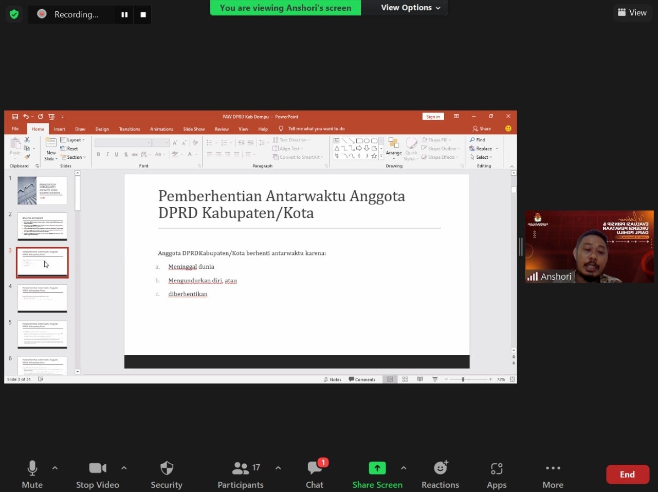 Hal ini disampaikan Ketua Divisi Penyelenggaraan Pemilu KPU NTB, Zuriati dalam Kajian Teknis Seri 10 yang mengusung tema "Penggantian Antarwaktu" secara daring, Kamis (10/2).