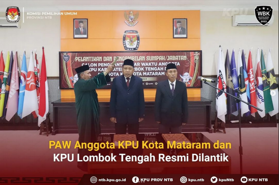 Calon Pengganti Antarwaktu (PAW) Anggota KPU Kabupaten Lombok Tengah atas nama Rahim, S.Ag., M.Pd.I dan Anggota KPU Kota Mataram atas nama M. Wasilatul Khair, S.Pt. resmi dilantik sebagai Anggota KPU kabupaten/kota.