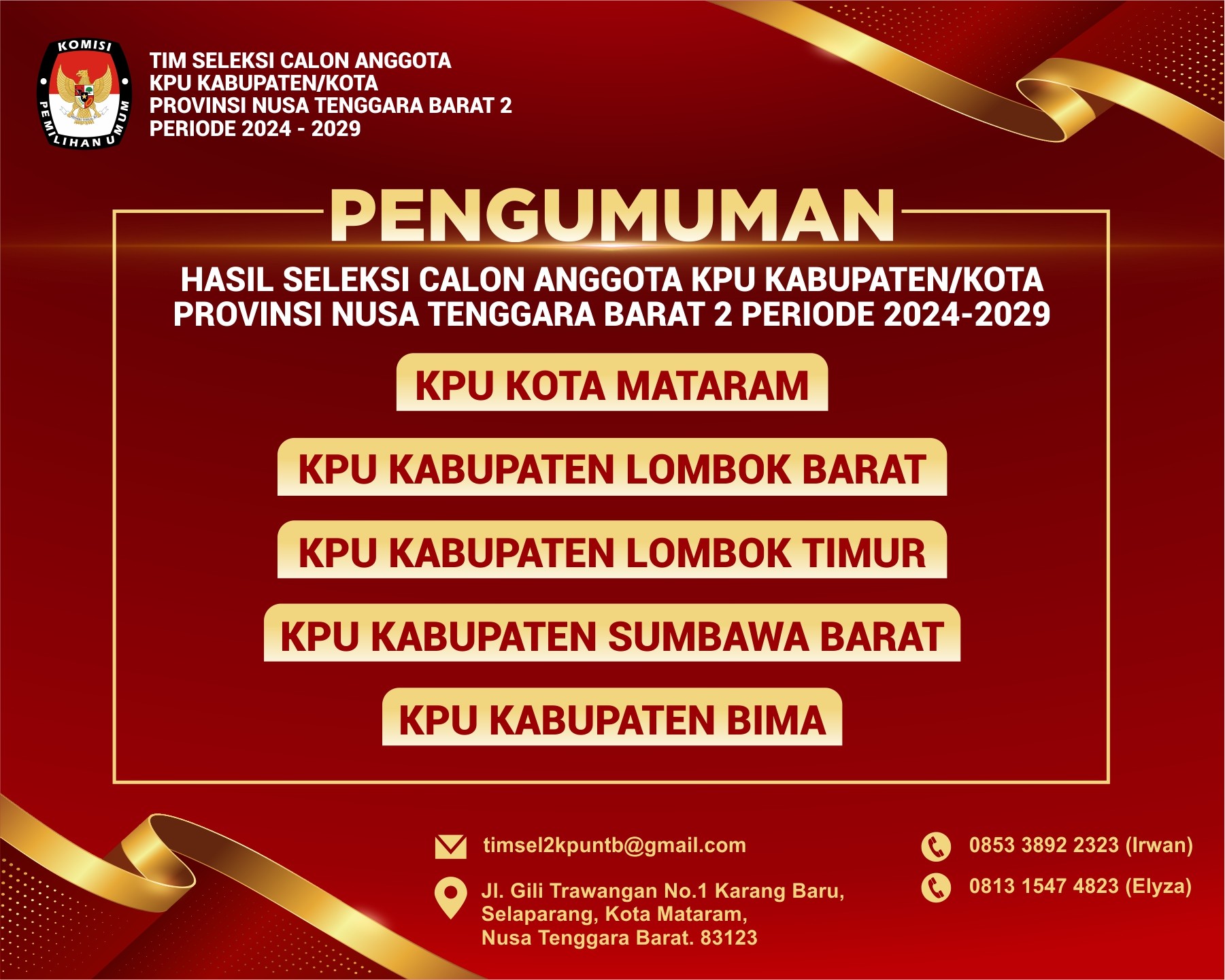 Pengumuman Hasil Seleksi Calon Anggota KPU Kabupaten/Kota Provinsi Nusa Tenggara Barat 2 Periode 2024-2029