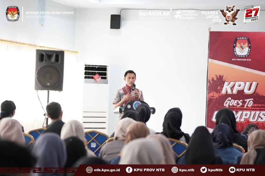 Dalam sambutannya Ketua divisi sosialisasi pendidikan pemilih dan SDM KPU Provinsi NTB Agus Hilman mengatakan mahasiswa harus menjadi garda terdepan mengawal proses demokrasi