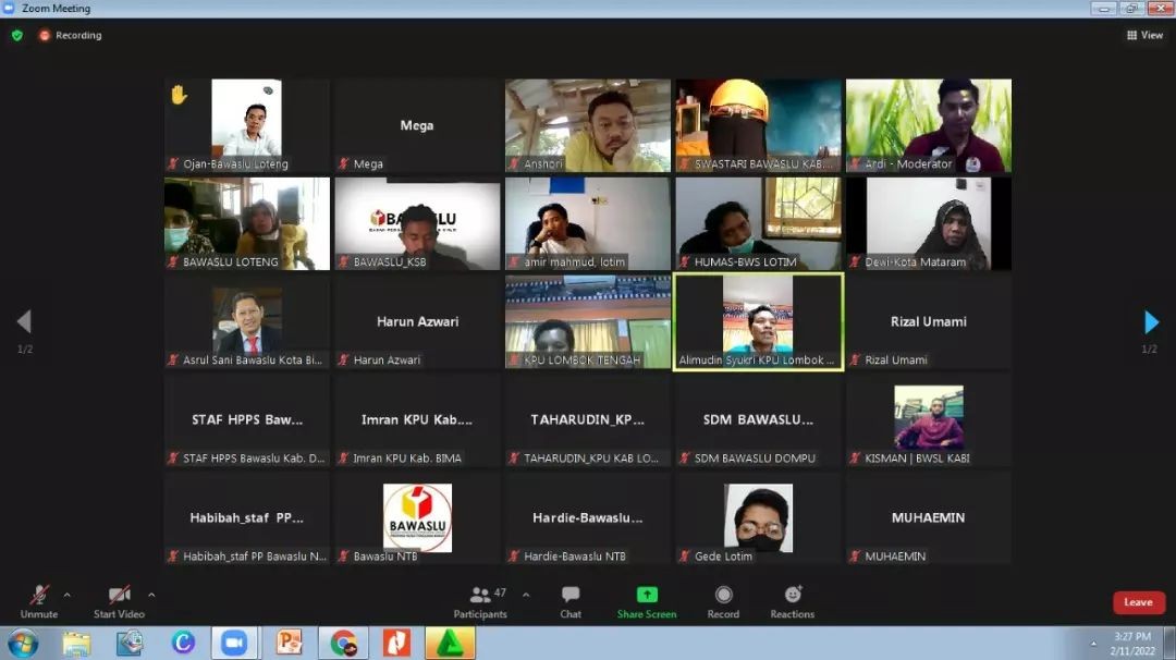 Dalam rangka untuk menyamakan pemahaman antar lembaga penyelenggara Pemilu, KPU NTB dan Bawaslu NTB lakukan diskusi dengan tema "Bedah Undang-Undang Pemilihan Umum", Jum'at (11/2). Diskusi ini diselenggarakan dua pekan sekali setiap hari Jum'at yang diikuti oleh KPU Kabupaten/Kota dan Bawaslu Kabupaten/Kota se-NTB.