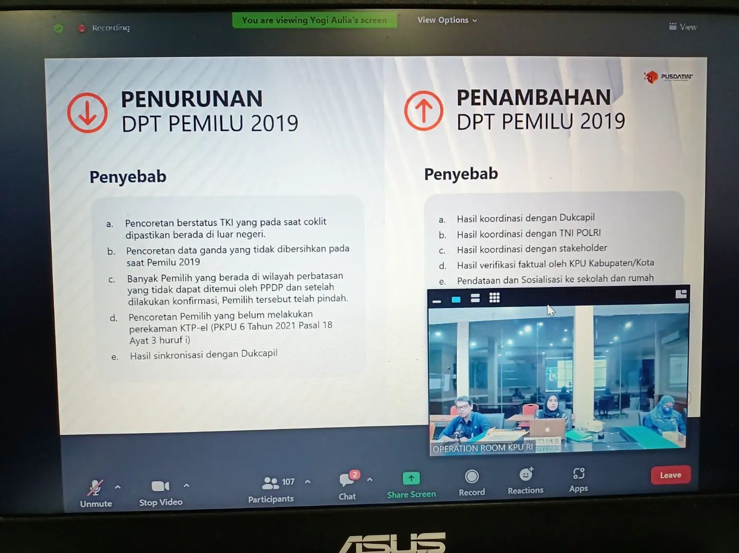 Dalam rangka Persiapan Tahapan Krusial Pemilu 2024, KPU Provinsi NTB Hadiri Rapat Koordinasi Daftar Pemilih Berkelanjutan yang di laksanakan secara Daring oleh KPU RI, Selasa (24/5) dengan peserta KPU Provinsi se Indonesia.
