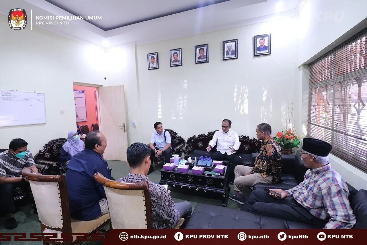 Ketua KPU Provinsi NTB yang menerima kunjungan tersebut, memaparkan pengalaman Pemilu 2019 yang lalu dalam mempersiapkan Pemilu 2024 yang sebentar lagi dimulai 14 Juni ini tahapannya.