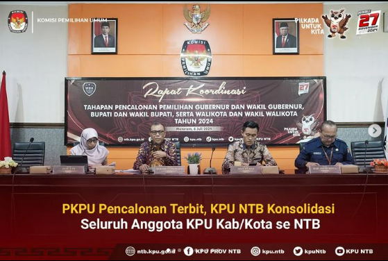 Sehubungan telah terbitnya Peraturan Komisi Pemilihan Umum (PKPU) Nomor 8 Tahun 2024 tentang Pencalonan Kepala daerah, KPU Provinsi NTB melakukan konsolidasi pemahaman di jajaran penyelenggara pemilu tingkat Kab/kota se NTB, Sabtu (6/7) di Mataram