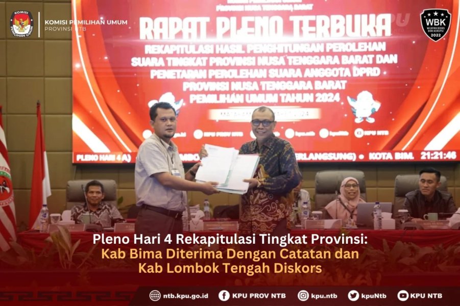 Pleno Hari 4 Rekapitulasi Tingkat Provinsi: Kab Bima Diterima Dengan Catatan dan Kab Lombok Tengah Diskors.