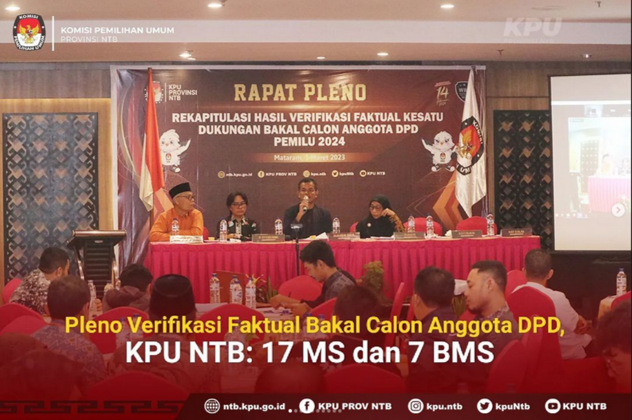 Pleno Verifikasi Faktual Bakal Calon Anggota DPD, KPU NTB: 17 MS dan 7 BMS