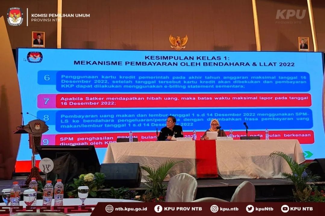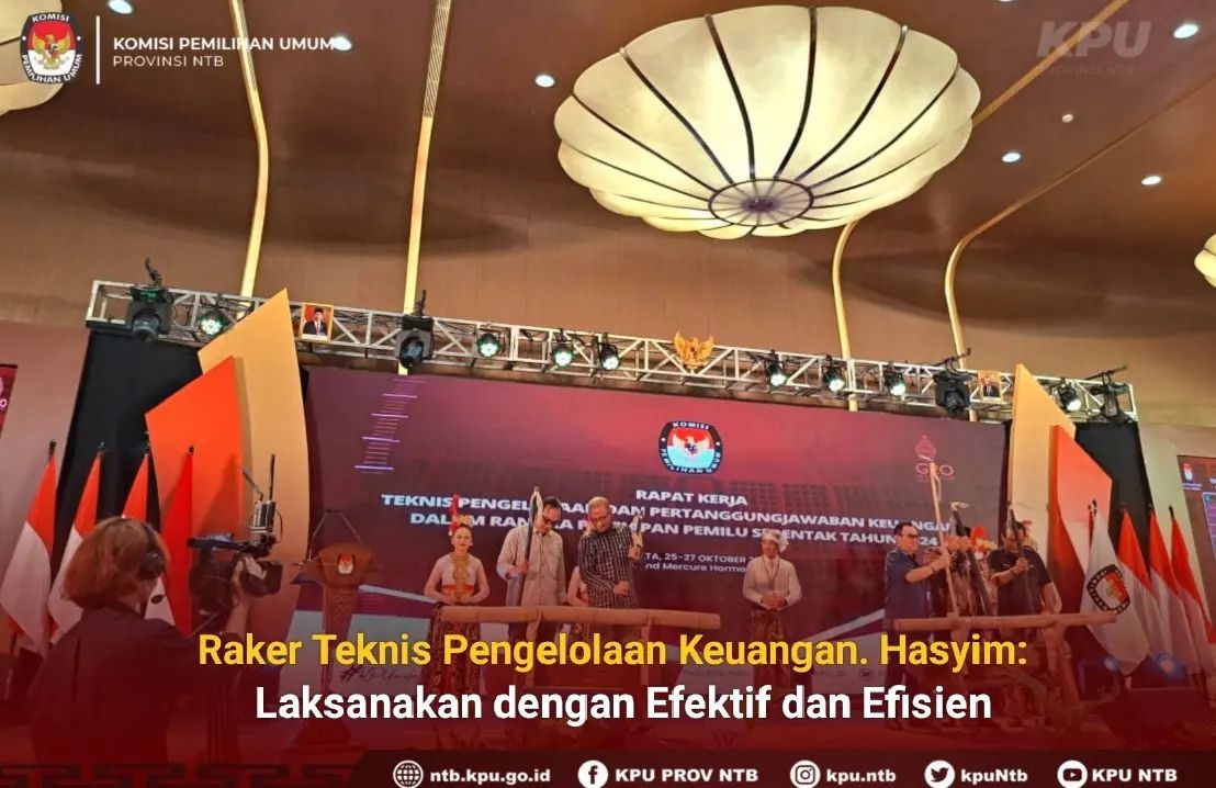 KPU Provinsi NTB hadiri Rapat Kerja Teknis Pengelolaan dan Pertanggungjawaban Keuangan. Dalam sambutannya Ketua KPU RI Hasyim Asy'ari mengatakan "Dalam pertanggungjawaban keuangan harus memperhatikan prinsip efisiensi dan efektif".