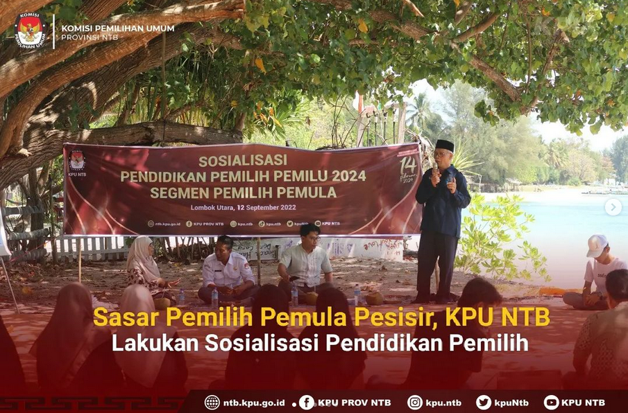 Upaya meningkatkan partisipasi masyarakat pada Pemilu 2024 mendatang, KPU Provinsi NTB menyasar Pemilih Pemula Daerah Pesisir Pantai di Lombok Utara dengan mengadakan Sosialisasi Pendidikan Pemilih di Desa Sigar Penjalin, Lombok Utara, Senin (12/9)