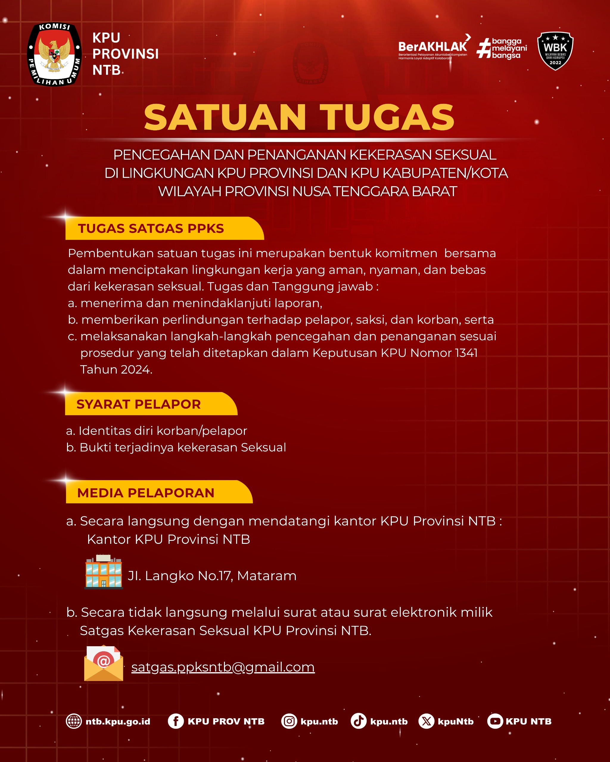 Satuan Tugas Pencegahan dan Penanganan Kekerasan Seksual di lingkungan KPU Provinsi dan KPU Kabupaten/Kota Wilayah Provinsi Nusa Tenggara Barat
