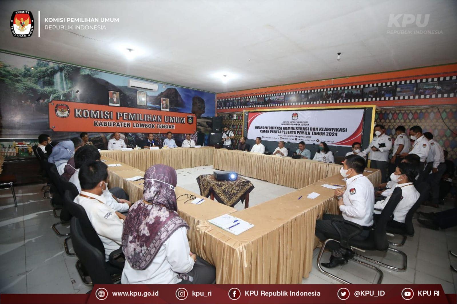 Sekretaris Jenderal KPU Bernad Dermawan Sutrisno didampingi Kepala Biro Perencanaan dan Organisasi Suryadi, Kepala Biro Umum M. Syahrizal Iskandar, Anggota KPU Provinsi Nusa Tenggara Barat (NTB) Agus Hilman serta Sekretaris KPU Provinsi NTB Mars Ansori Wijaya melakukan kunjungan kerja ke Kantor KPU Kabupaten Lombok Tengah, Provinsi NTB, Kamis (25/8/2022).