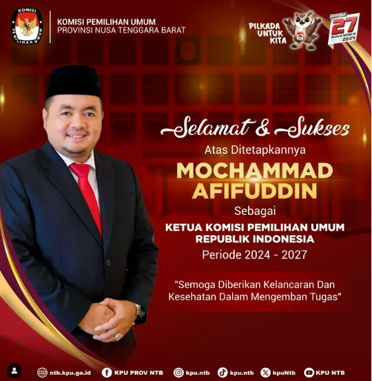Selamat & Sukses atas ditetapkannya Mochammad Afifuddin sebagai Ketua KPU Republik Indonesia Periode 2024 - 2027
