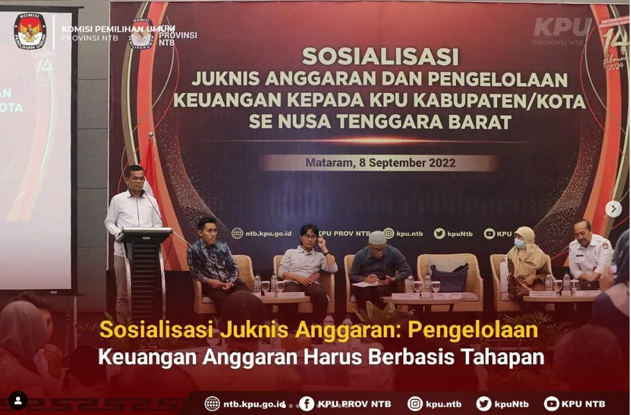 Dalam kegiatan ini, KPU Provinsi Nusa Tenggara Barat mengundang pihak dari KPPN Mataram Bagus Soekarno Putra dan KPU Republik Indonesia Diah Martiningsih sebagai narasumber