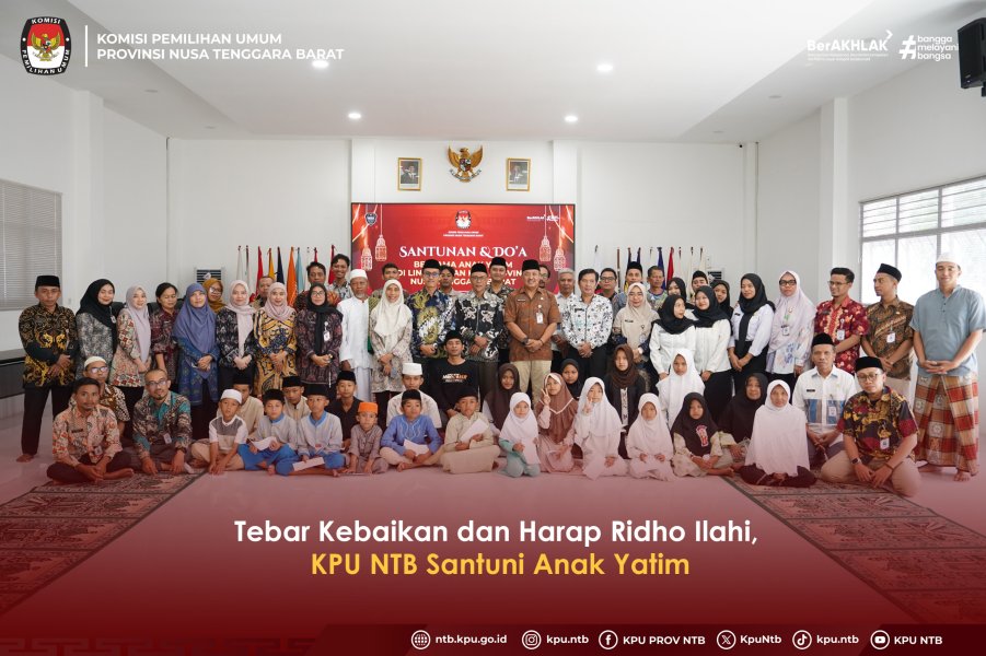 Dalam bingkai kebersamaan dan kepedulian, KPU Provinsi NTB kembali menggelar kegiatan rutin santunan dan doa bersama anak-anak yatim di lingkungan sekitar KPU Provinsi NTB. Kegiatan ini adalah wujud menebar kebaikan dan mengharap Ridho Ilahi dalam menjunjung tinggi nilai-nilai kemanusiaan dan ajaran agama.