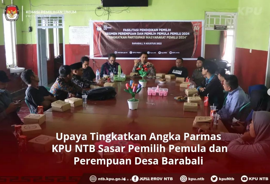 Guna meningkatkan angka Partisipasi Masyarakat, KPU Provinsi NTB sasar Pemilih Pemula dan Perempuan Desa Barabali Guna menyukseskan Pemilu 2024. Kegiatan Sosialisasi dan Pendidikan Pemilih pun dilaksanakan di Desa ini, Selasa (9/8)