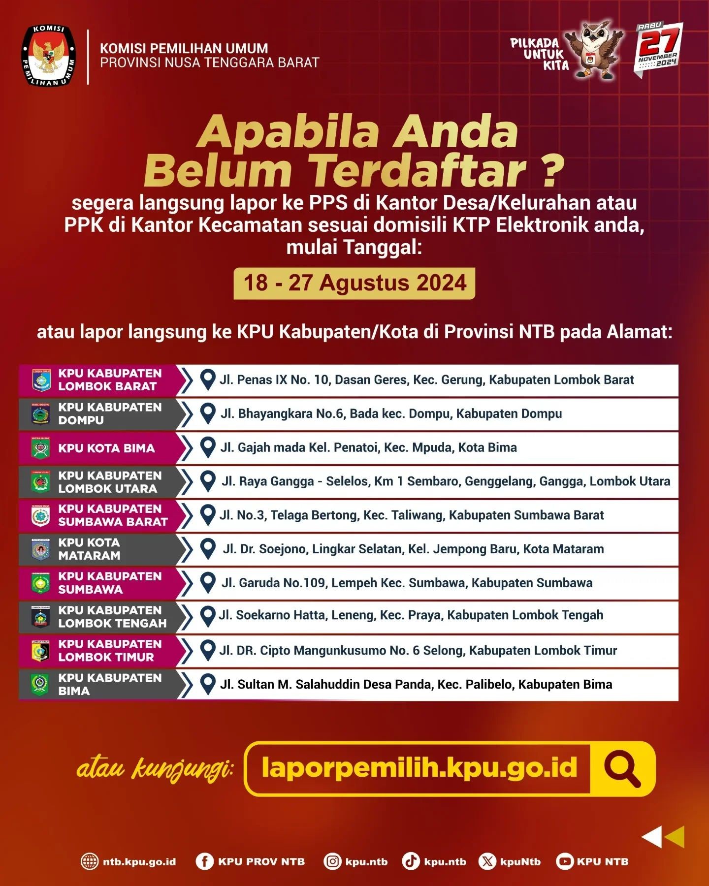 Pengumuman Daftar Pemilih Sementara (DPS) Pemilihan Gubernur dan Wakil Gubernur Nusa Tenggara Barat Tahun 2024.
